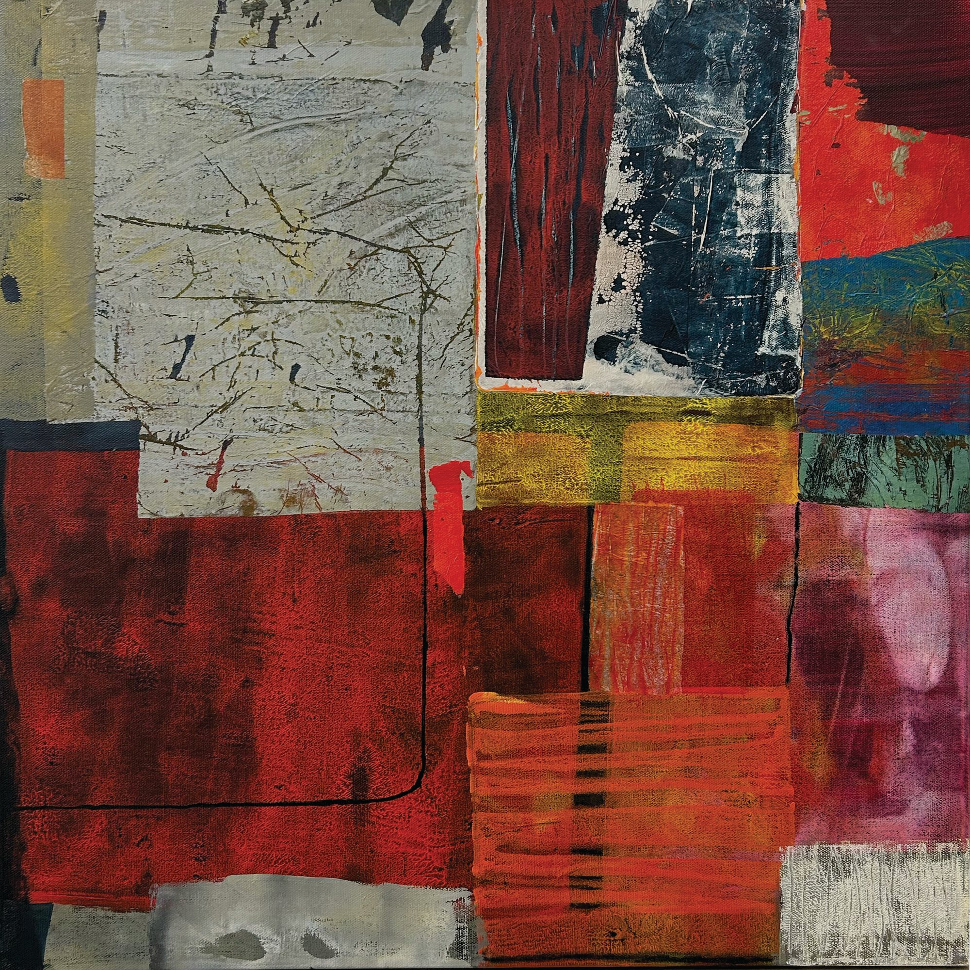 Original acrylic and collage painting on 24x24 gallery wrapped canvas